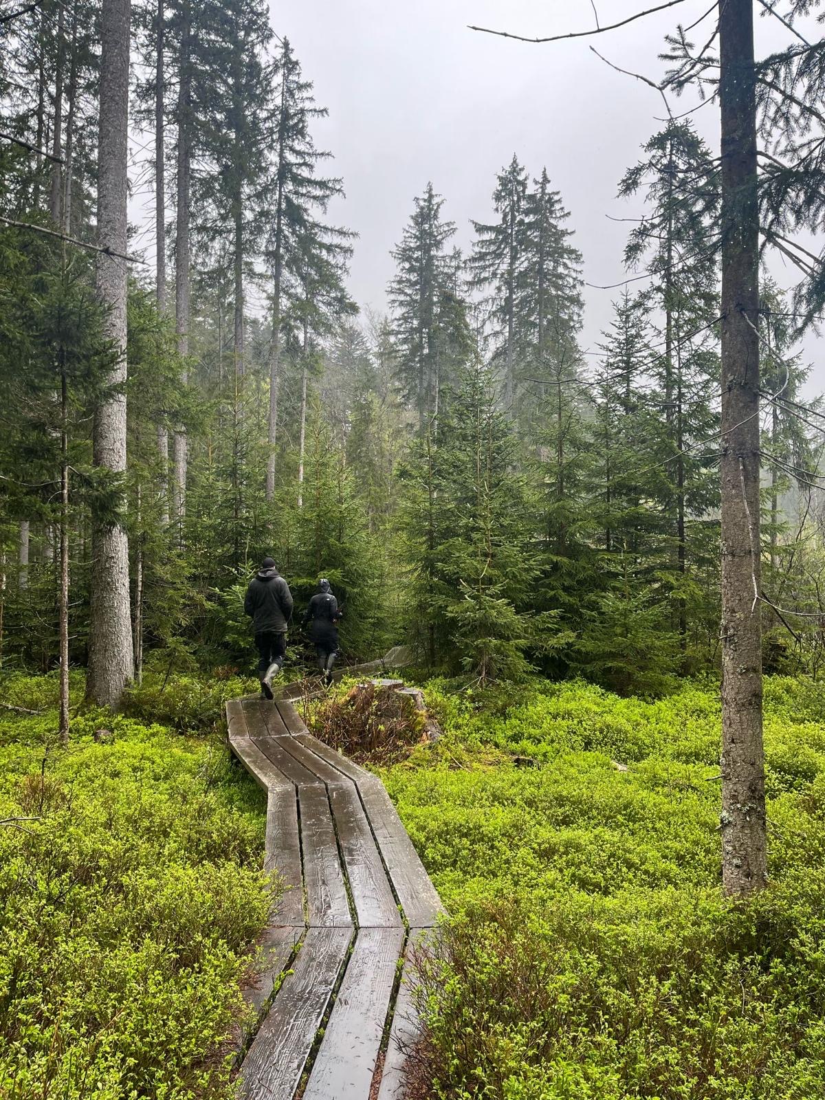 Wir als Umweltpraktikant:innen durften dabei helfen, ein Moor im Bayerischen Wald wiederherzustellen. Früher war es trockengelegt, jetzt wird es renaturiert. Dazu wurden Dämme gebaut, die das Wasser zurückhalten. So steigt der Wasserstand im Moor wieder. Wir haben dafür gesorgt, dass die Dämme feucht bleiben – das ist wichtig, sonst kann das ganze Moor wieder austrocknen.