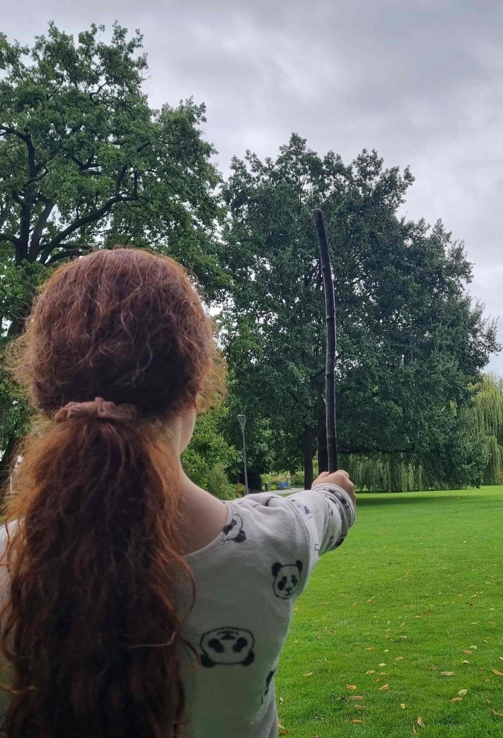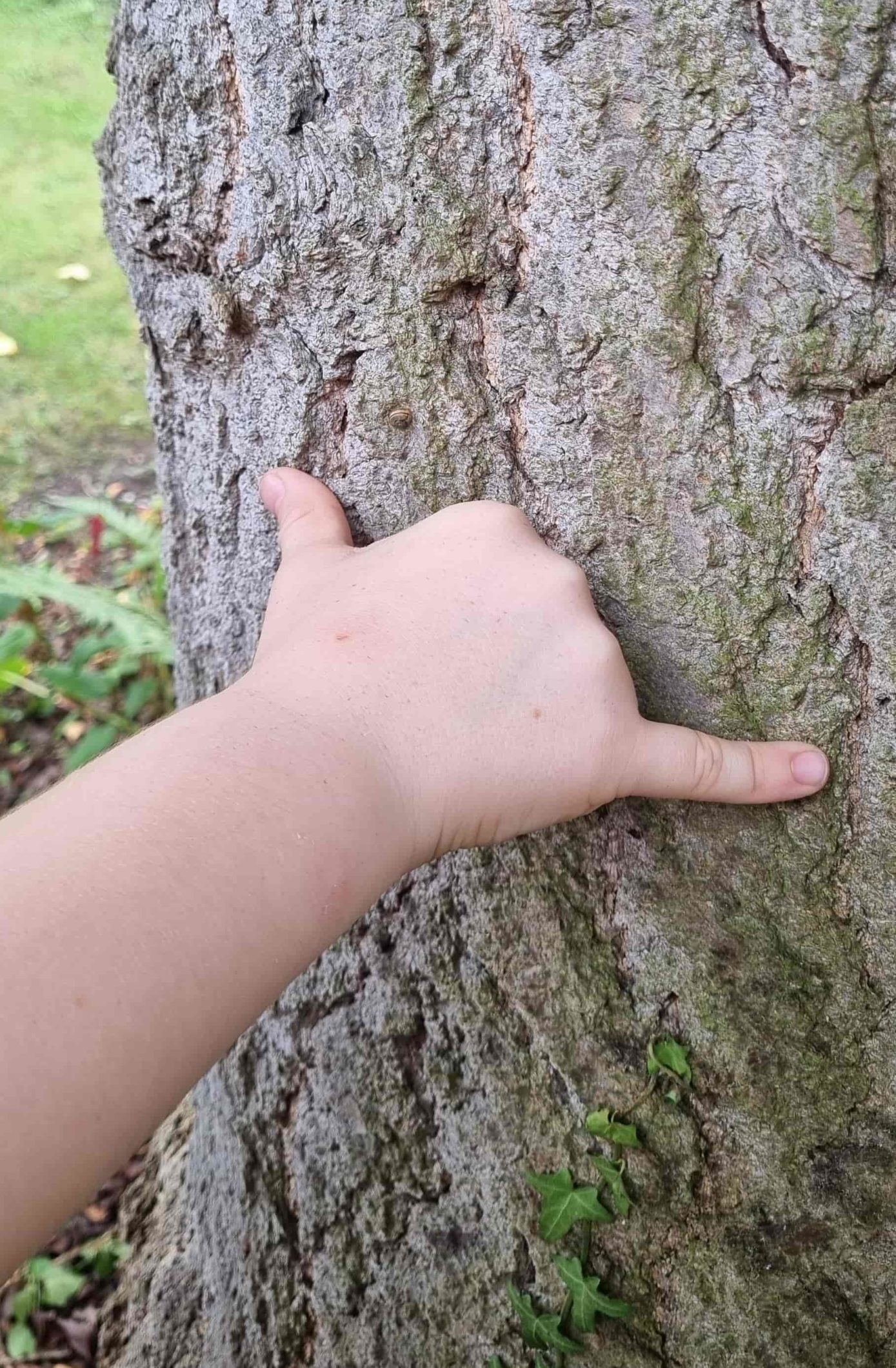 Mit dem Försterdreieck kann man ganz einfach herausfinden, wie viel CO2 ein Baum ungefähr speichern kann. Ein Ast über den Daumen gepeilt, die Schritte zum Baum zählen, die Handspanne an den Stamm legen und schwupps ist der Baum gemessen!